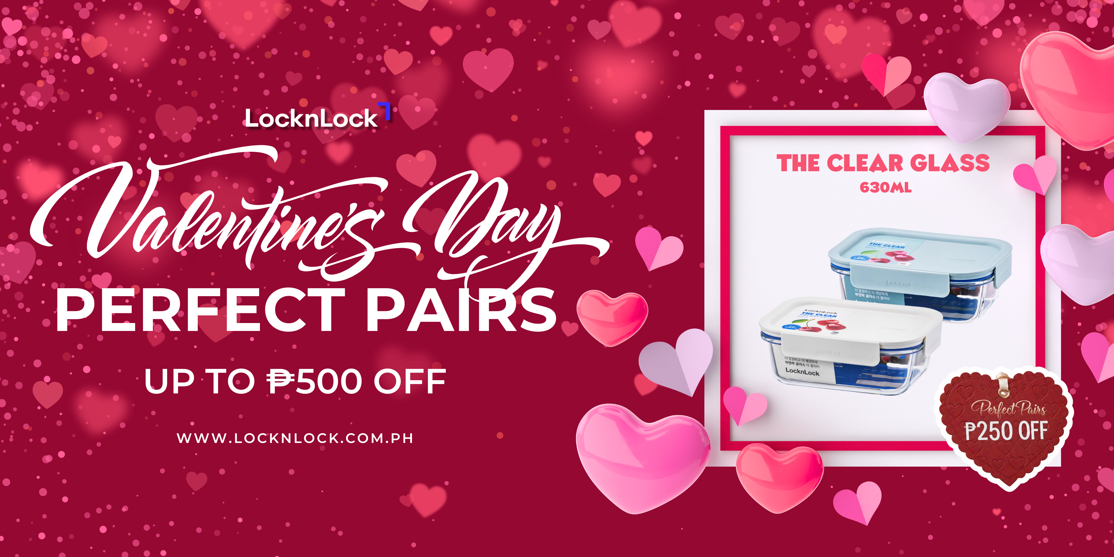 LocknLock Set of 2 The Clear Glass 500ml (Square) Airtight, Oven-Safe Glass