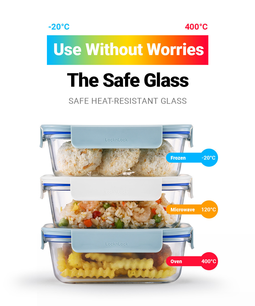 LocknLock Set of 2 The Clear Glass 630ml (Rectangle) Airtight, Oven-Safe Glass Perfect Pairs