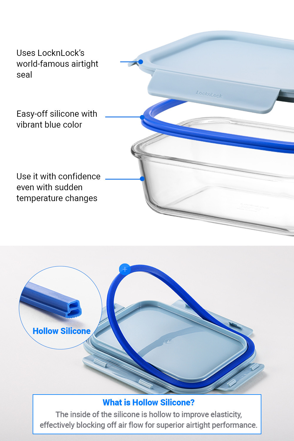 ● KEEP FOOD FRESH LONGER: LocknLock's exclusive hollow silicone seal guarantees superior airtight performance, preserving the freshness and flavor of your food.